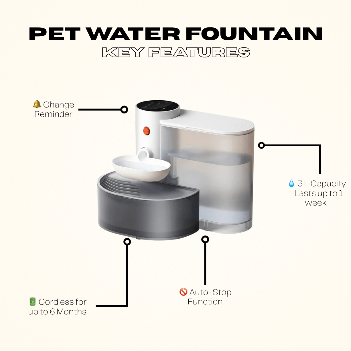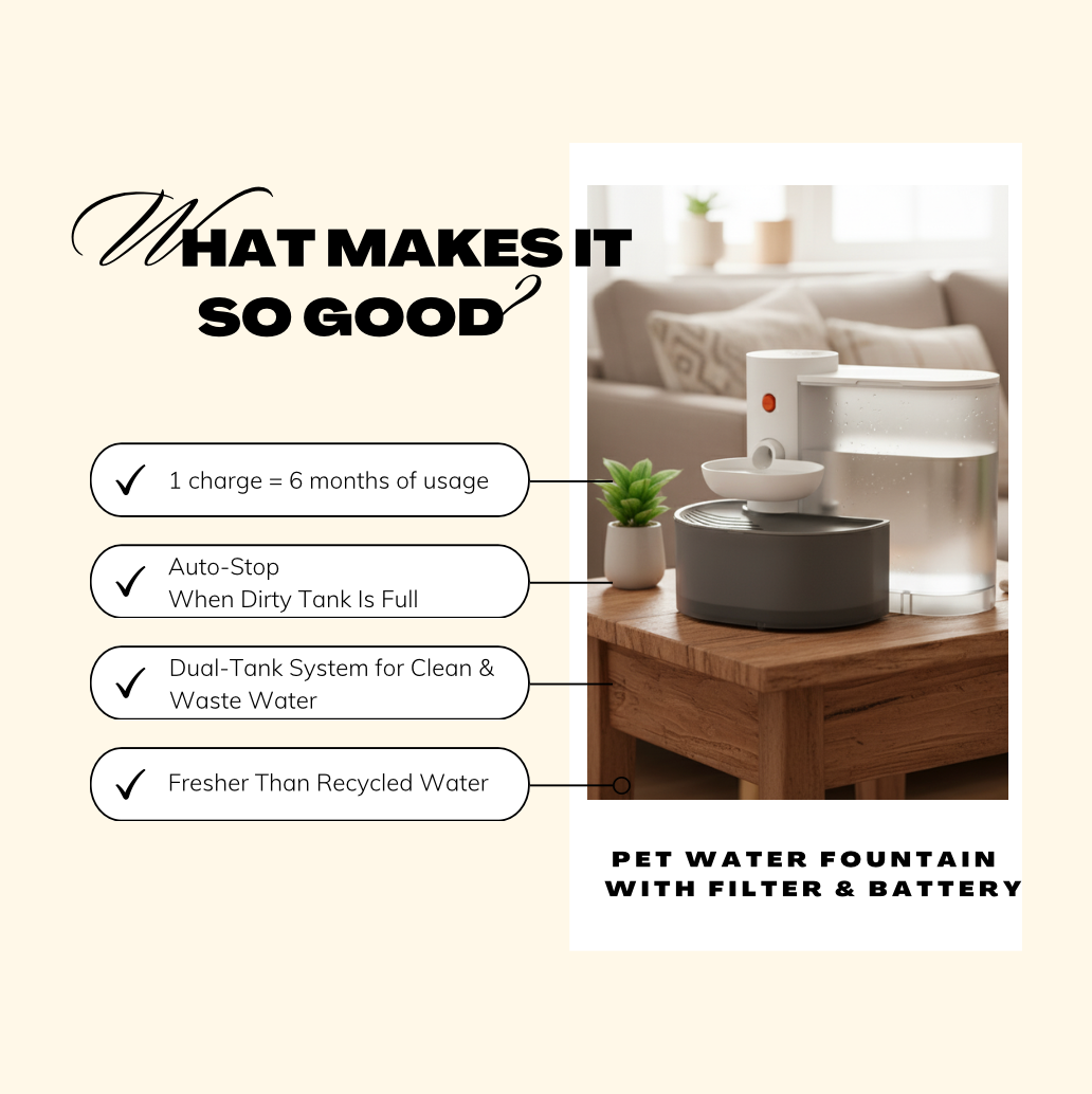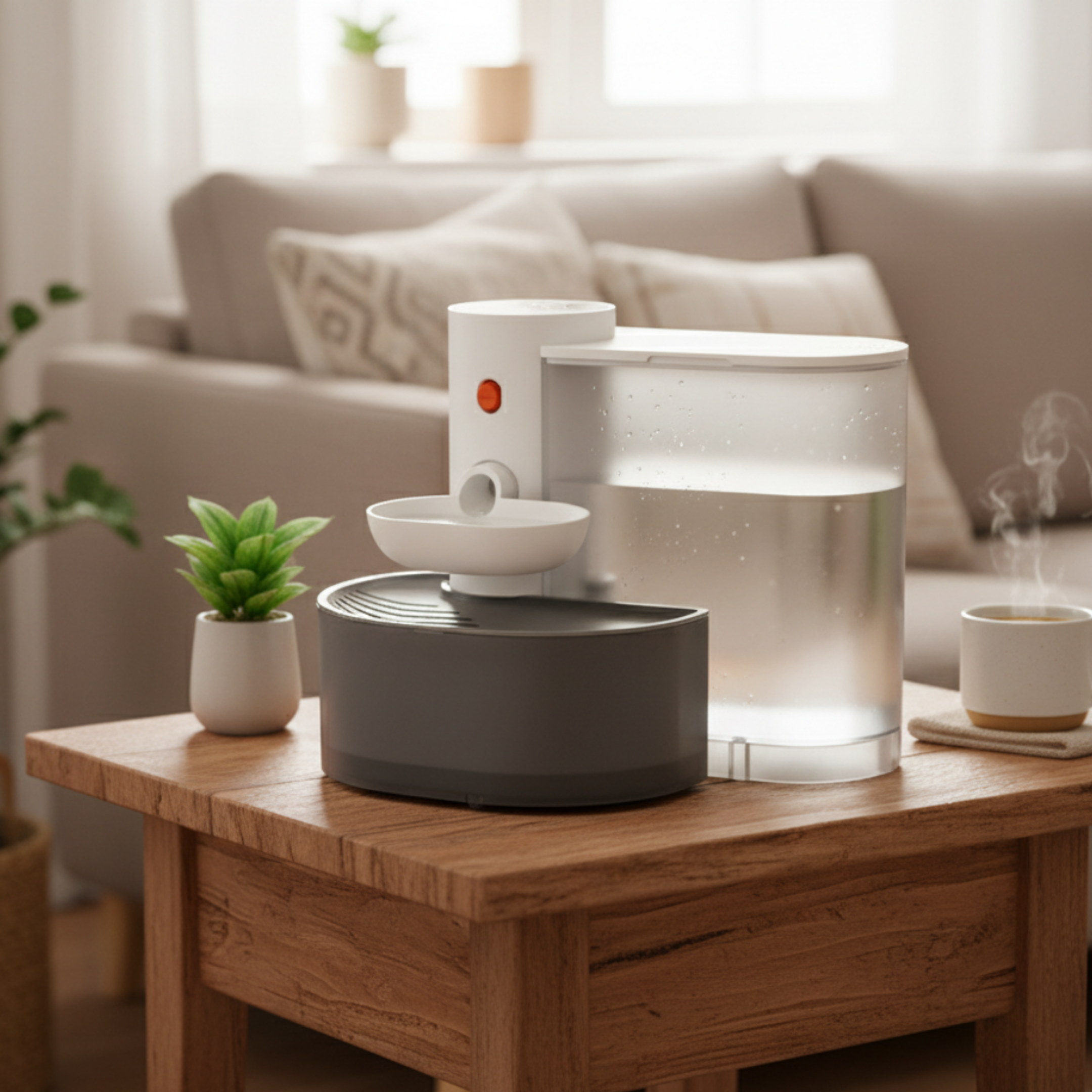 No filters, no ongoing costs. The built-in system keeps water circulating and clean — just rinse the tank occasionally.